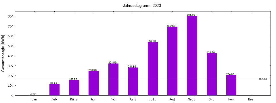 | Maximale Monatsleistung: | 805.10 | kWh |