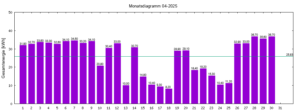 | Maximale Tagesleistung: | 31.90 | kWh |