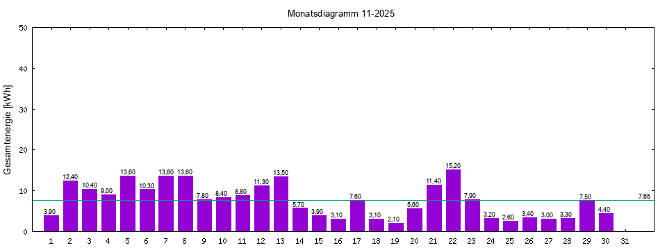 | mittlere Tagesleistung: | 7.65 | kWh |