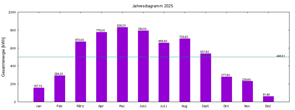 | Maximale Monatsleistung: | 829.20 | kWh |