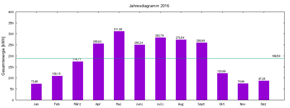 | mittlere Monatsleistung: | 189.50 | kWh |