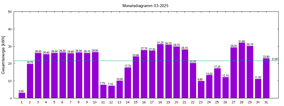 | Maximale Tagesleistung: | 31.90 | kWh |