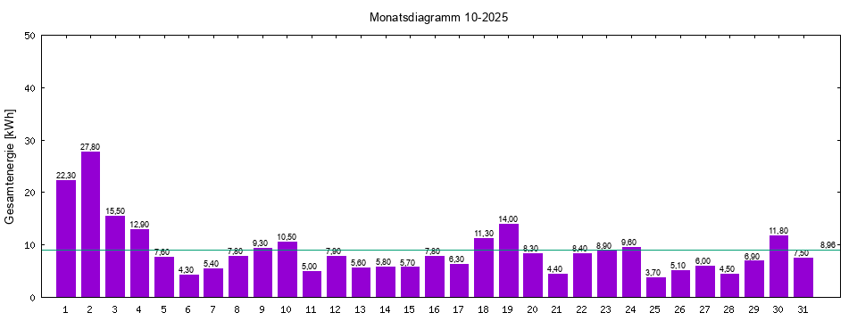 | Maximale Tagesleistung: | 27.80 | kWh |